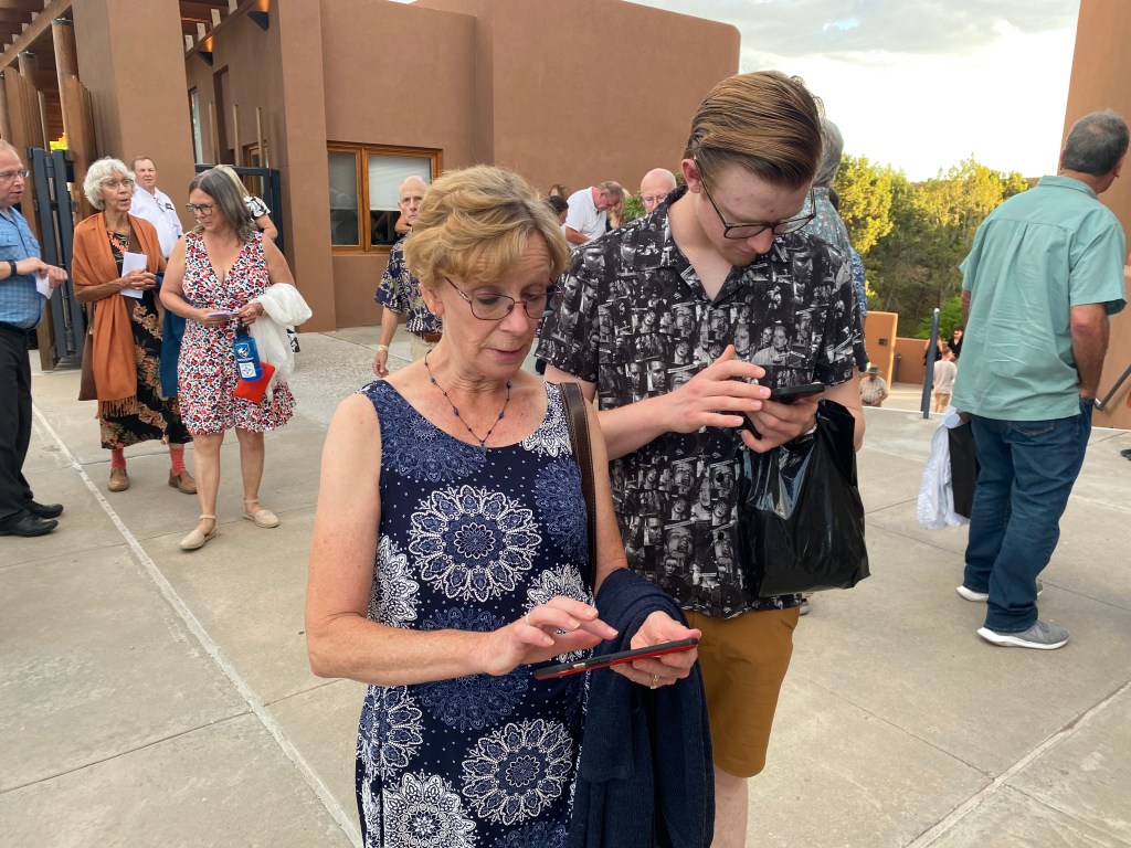 To the opera Friday night, in Santa Fe. Overheard this faux conversation, which I took as directed at me: