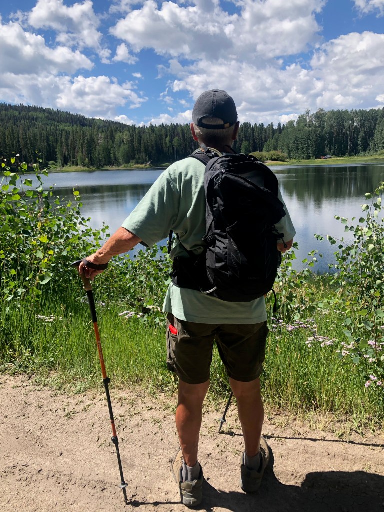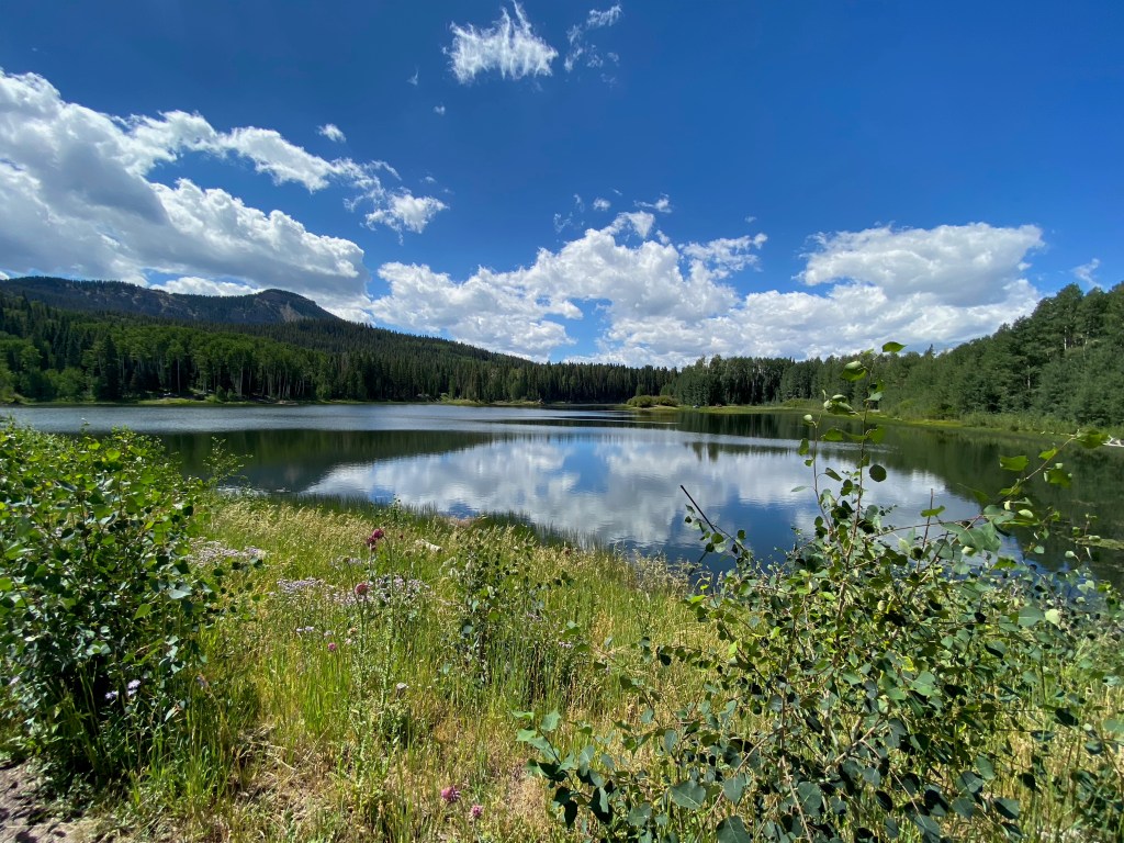 Last Friday we visited a park belonging to the city of Montrose that is 22 miles away, and is at an altitude of 9700 feet. It lies on the shoulders of Storm King mountain, south and slightly east of us. Its name: Buckhorn Lakes.