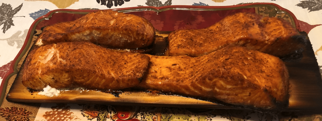 Had friends over for dinner last night, good people we haven’t spent nearly enough time with this past year. I had decided to grill some salmon on a cedar plank, something I’d done before, but it had been quite a while. And lo and behold, it turned out exactly the way I hoped that it would.