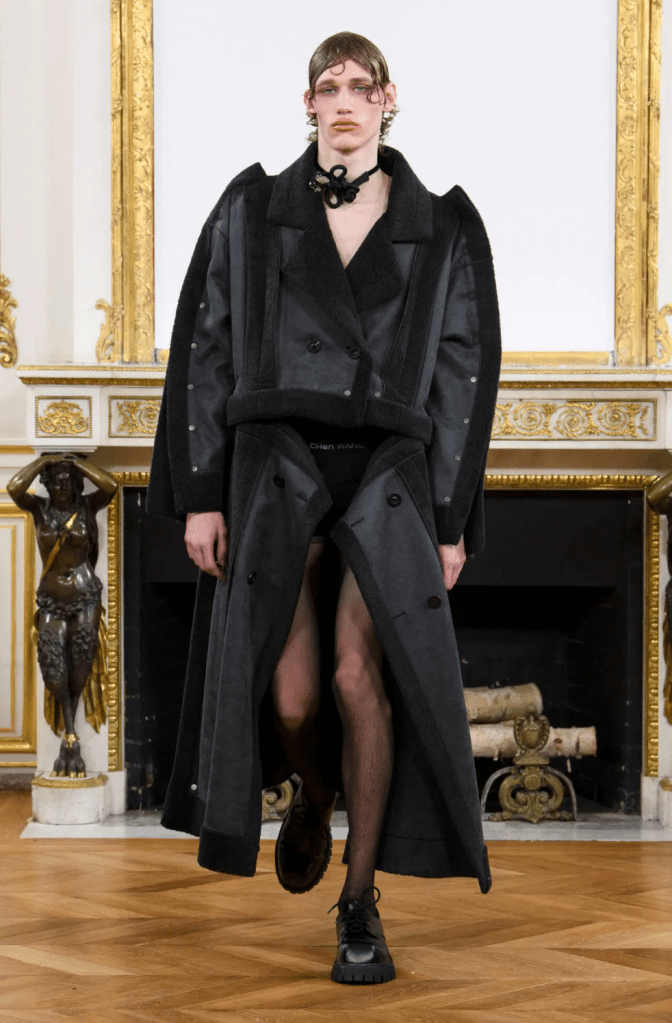 Sunday morning in the TMens fashion section of the New York Times there was this photograph from a show this year. Title of the piece was “Men’s Tights Aren’t Just for Elizabethan Aristocrats Anymore.”