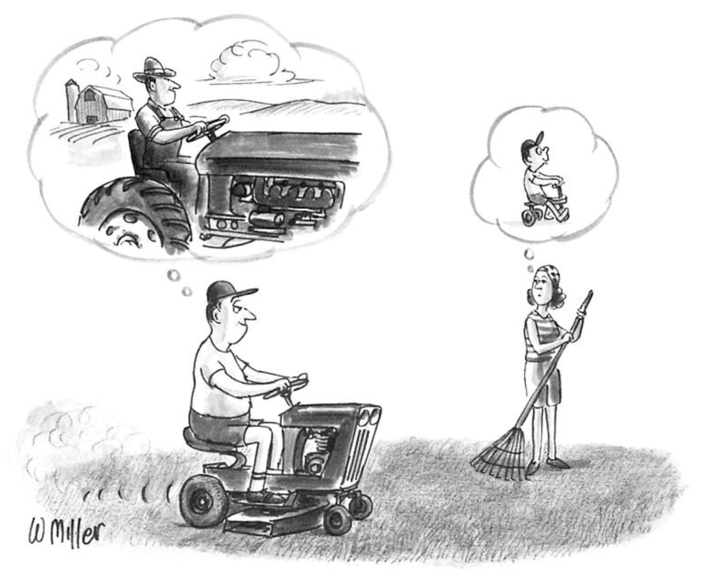 You may scoff, and that’s okay. But if I were you, I would never turn my back on the lawn mower.