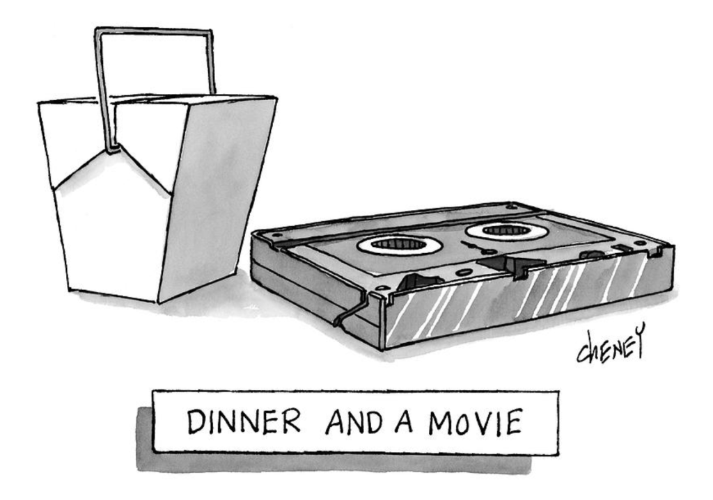 Those of you who have younger children might have to explain the above cartoon to them. Not the carton of Asian takeout but the darker flat thing.