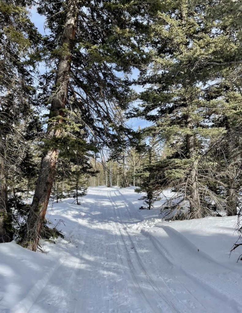 Explored another Nordic ski area on Tuesday, one we’d never visited. It is up on the Uncompaghre Plateau, 24 miles from our home, at an altitude of around 9500 feet. They are called the Divide Road Nordic Trails. The area is an all-volunteer project so we made a small monetary contribution since we’d done no work at all.