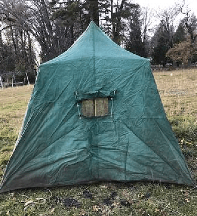 I bought my first tent from a medical school classmate for $10. It was a highly used structure, looking like the one in the photo. The center pole was on the inside, which meant that you bumped into it constantly, and if you hit it too hard it collapsed and the roof dropped down three feet.
