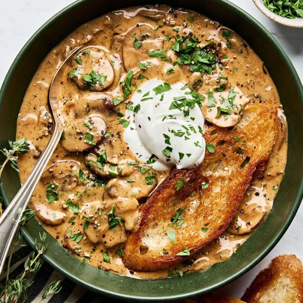 My favorite soup recipe? There is no such thing. That honor is divided between so many as to be meaningless. My favorite so far this cooler season? That’s an easier question to answer. Last week I made Hungarian Mushroom Soup . Robin and I spooned up our portions and then shamelessly licked our bowls and spoons clean. It’s that good. I came across the recipe many years back and the soup has never failed to inspire.